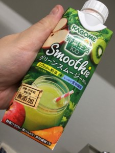最近朝はパワーをつけるために、朝コンビニでグリーンスムージーを買って飲んでます。これ、美味しいんですよー!お腹の調子も良くなるし、朝は野菜が不足しがちなので。