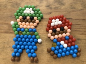 手作りのビーズマリオ&ルイージです!熱を与えるとくっつくタイプのビーズらしくてこれを小学生の女の子がわざわざ作ってくださったのです!この前のコスプレ営業で、ルイージの格好していたのでなんだかタイムリーですね(*’ω’*)
